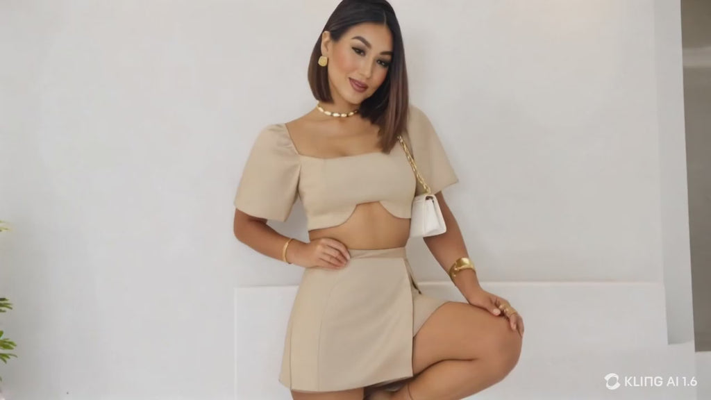 Short/Saia: Modelagem sofisticada com fenda lateral, proporcionando um toque de sensualidade e fluidez ao look.